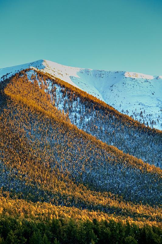 △金秋时节,新疆阿勒泰哈巴河县山野白雪覆盖。