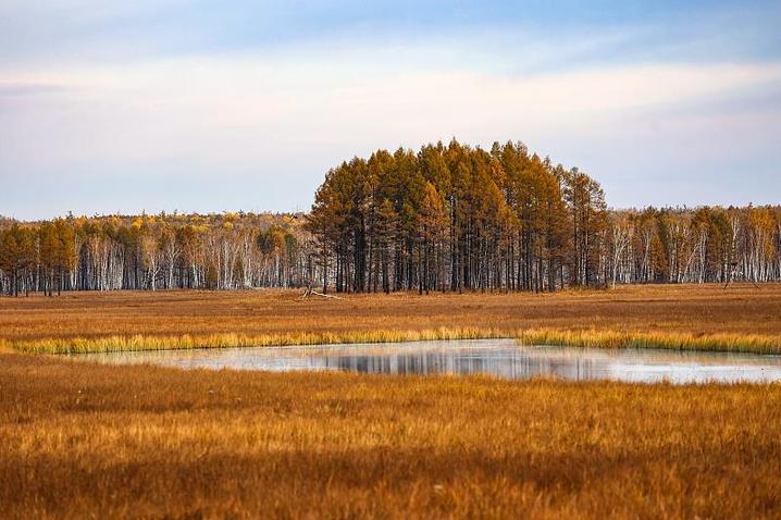 △黑龙江省大兴安岭的南瓮河国家级自然保护区水草丰美,秋色斑斓如画。