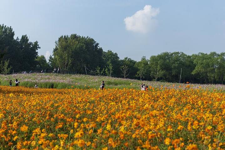 △北京海淀区的一个公园里秋英花盛开,市民在花海中拍照。
