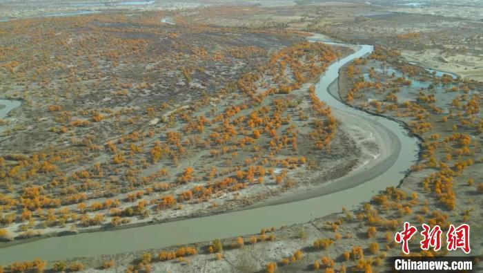 胡杨林成片分布在塔里木河中下游和孔雀河下游两岸,成为新疆塔克拉玛干沙漠里的“绿色走廊”。(巴特尔达拉 摄)