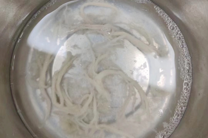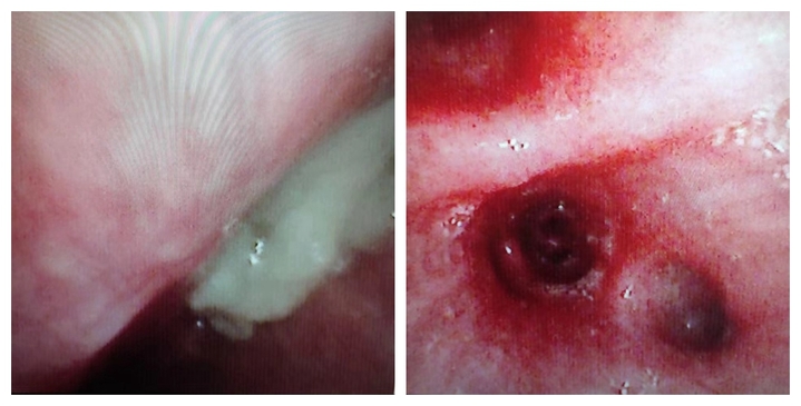 当晚十点,术前准备完成,刘峰主任、张佳敏医生、备班护士许玲及麻醉科共同为阳阳实施了急诊纤支镜灌洗术。术中,医生发现右主支气管塑形完全堵塞,通过负压吸引及活检钳完整取出塑型痰栓,形状类似分叉的“树枝”。堵塞物取出后,阳阳的血氧饱和度快速回升,从78%升至100%。随后,医生又用纤支镜对肺部剩余痰液进行了冲洗。手术顺利完成,复查动脉氧分压也逐渐升至正常水平。