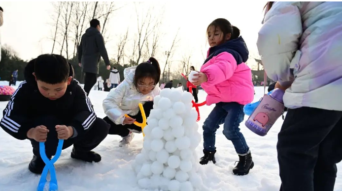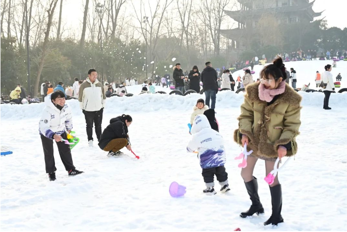 “放假时,泡在雪场里真是回忆满满”“在这里打雪仗真过瘾”“下次要带上更多的朋友一起来滑雪”……近日,位于江苏省淮安市清江浦区的古淮河生态公园内,“千里冰封”的壮阔雪景吸引不少市民、游客,或在这里打闹掷雪球,或乘着雪橇、气垫在雪地上驰骋,或开着雪地卡丁车来回穿梭,银装素裹的冰雪映衬着热闹的娱乐活动,成为这个冬天里消费市场的新亮点。