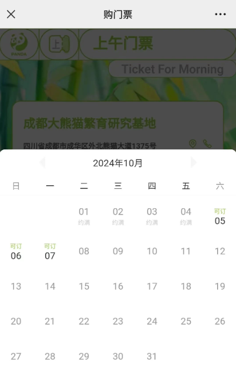 成都熊猫基地票务小程序显示