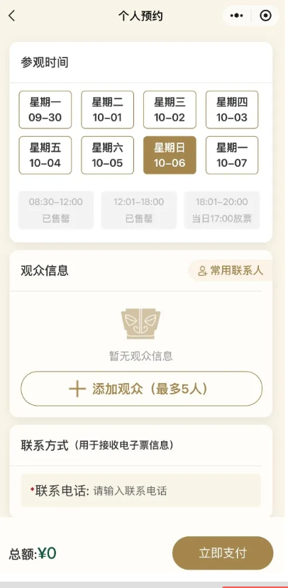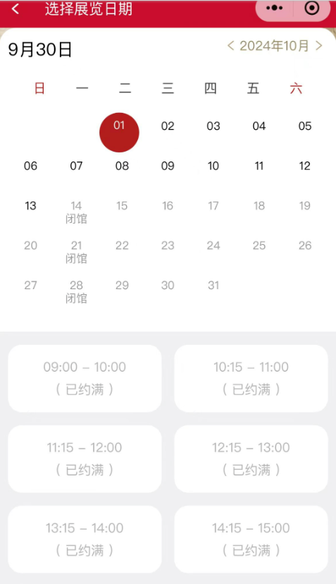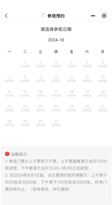 10月1日至6日参观预约已约满
