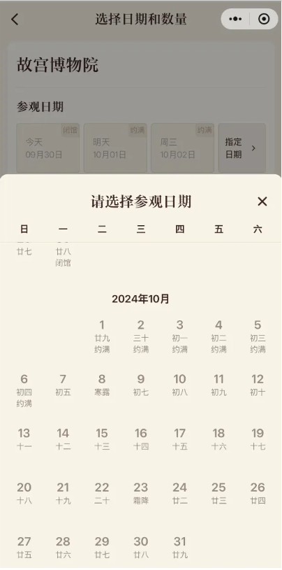 来源:故宫博物院预约页面