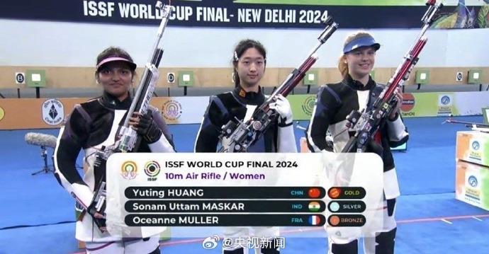 女子10米气步枪决赛,中国选手黄雨婷以254.5环的好成绩摘得金牌,打破了该项目的决赛世界纪录,这也是她获得的首枚世界杯总决赛个人项目金牌。