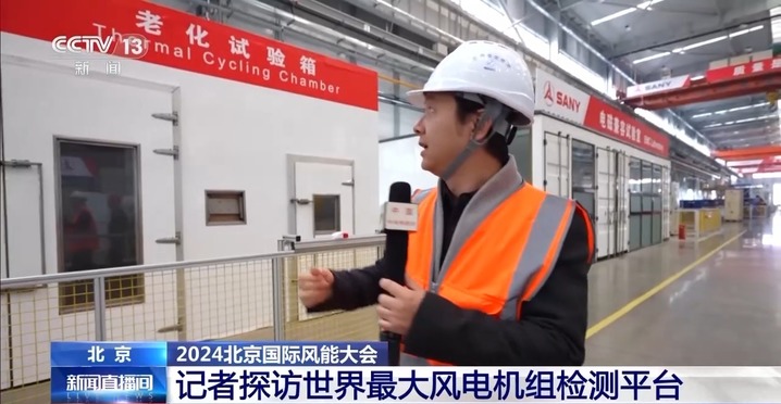 2024北京国际风能大会正在举行,展会集中展示了我国风电产业今年以来的最新技术进步和我国风电产业未来发展的方向。在会场附近的工业园区里,一个世界最大风电机组检测平台也刚刚投入运行。来看记者的现场探访。
