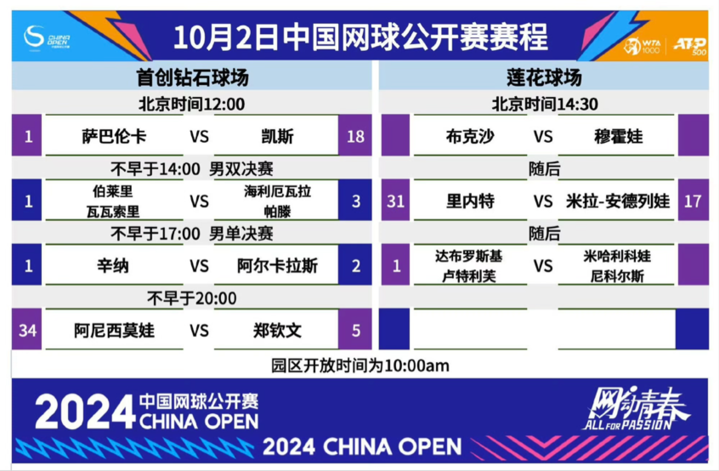 男单决赛上演 郑钦文冲击八强!中网今日赛程→