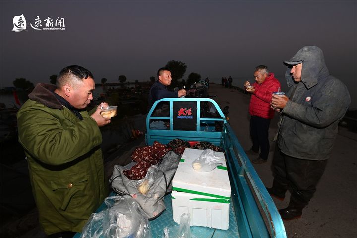 清晨6点,骆马湖洋河滩渔民刘裕东带着家里几个亲戚简单吃点早餐,准备奔赴渔场。