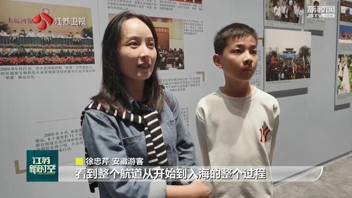 安徽游客徐忠芹:“看到航道从开始到入海的整个过程,通过5G技术让我们站在上面身临其境,视觉比较震撼,对大运河整个文化有一种活态的展示。”