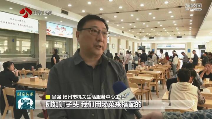 扬州市机关生活服务中心主任吴强:“例如狮子头,我们用汤菜来搭配的,还有马鞍桥烧肉、高邮蒲包肉。我们将七天的快餐做了两三种的变化,让来扬游客更有体验感。”