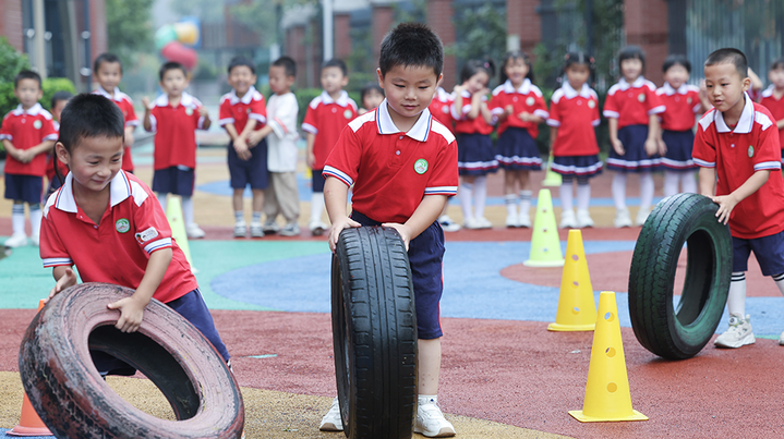 9月26日,浙江省湖州市长兴县开发区中心幼儿园开展迎国庆快乐游戏节活动。新华社 资料图