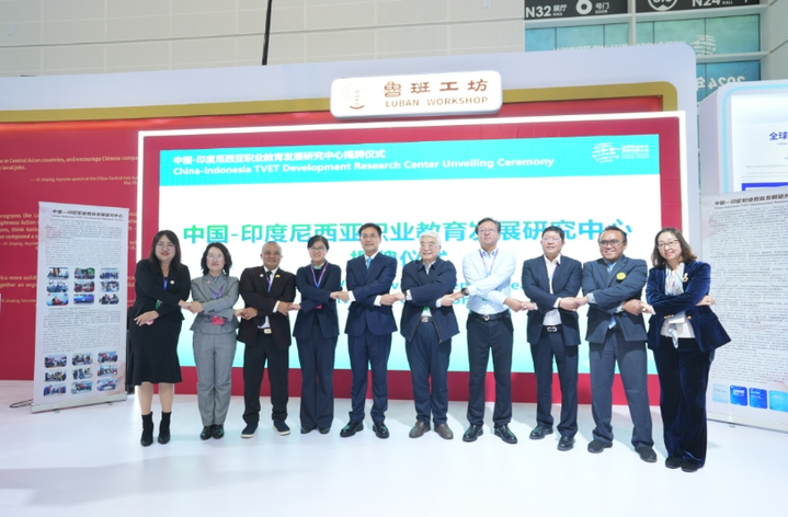 11月21日上午,中国—印尼职业教育发展研究中心揭牌仪式在天津举办的世界职业技术教育发展大会鲁班工坊展区顺利举行。