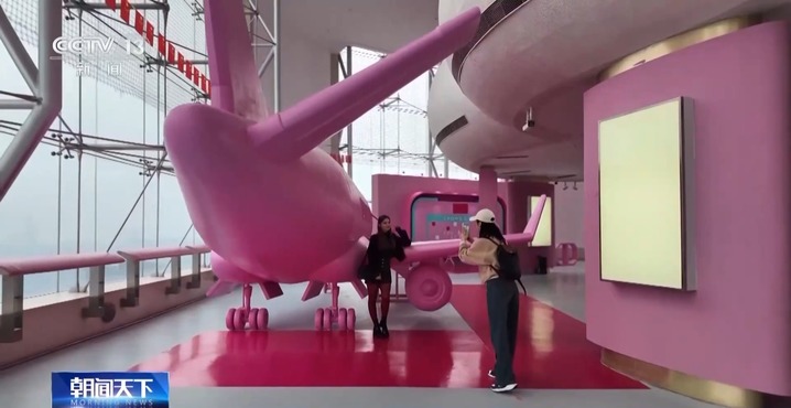 粉色的地板和墙面,仿佛进入梦幻的童话世界,这里位于解放碑世贸大厦顶层,又被称为天台131城市乐园。刚刚举办完的芭比65周年西南首展,为乐园留下了这个粉色调空间。