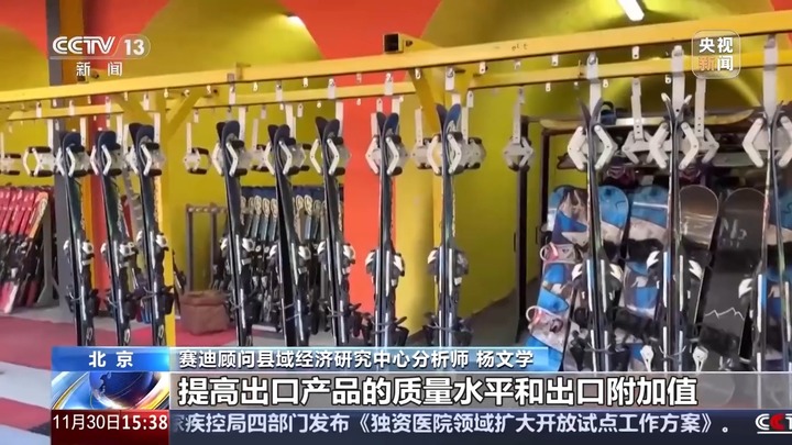 赛迪顾问县域经济研究中心分析师 杨文学:我国制造的体育用品兼具高品质、创新性、智能化、绿色化、个性化的特征,背后是中国制造转型的一个缩影,一批中小企业特色产业集群助推县域高质量发展。