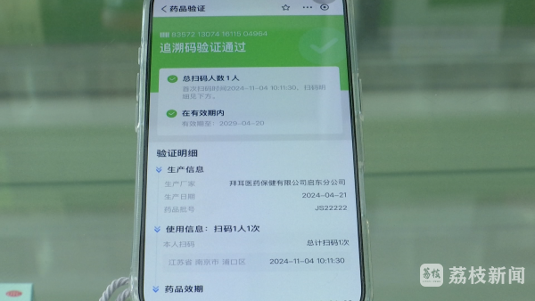 南京市民夏女士说:“上面生产日期、有效期都能看到,还能看到生产厂家,也能帮我们判断这个药是不是正品,上面还会显示码被扫了几次。”