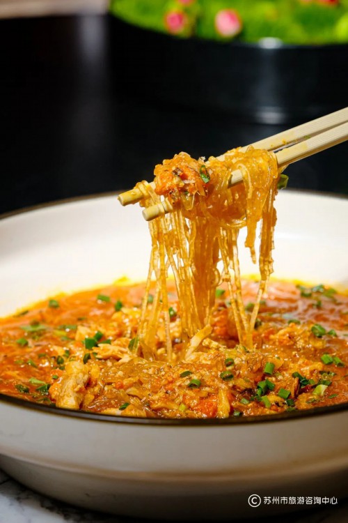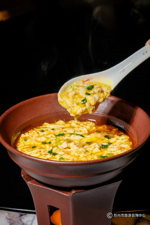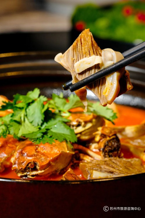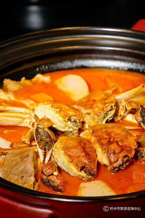 将大闸蟹和苏州秋冬限定美味藏书羊排一起烹饪,用砂煲文火慢煮,蟹鲜和羊肉香彼此交织碰撞,热乎乎吃上一碗,这一口鲜,从味蕾暖到心田。