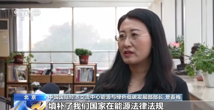 中国国际经济交流中心能源与绿色低碳发展部部长 景春梅:在《能源法》里也明确了提出了要坚持能源结构的调整,我们要绿色低碳发展,要优先开发可再生能源,还有推动能耗的双控制度向碳排放的双控制度转变等等一系列新的提法和规定。