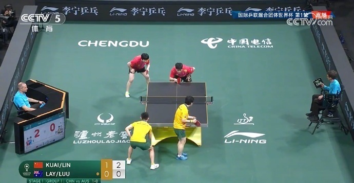 首场混双,林诗栋/蒯曼直落三局,11-5、11-3、11-5战胜澳大利亚组合卢伟/洪剑芳。中国队大比分3-0,赢得先机。