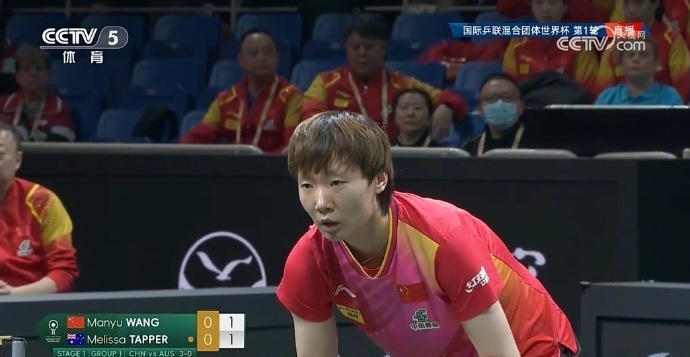 第二场女单,王曼昱3-0击败梅丽莎·泰普,中国队将大比分领先优势扩大至6-0。三局比分为11-3、11-6、11-2。