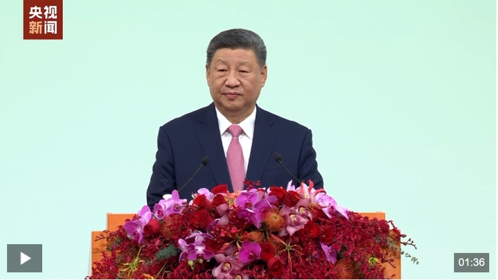 在热烈的掌声中,习近平发表了重要讲话。他首先代表中央政府和全国各族人民,向全体澳门居民致以诚挚问候;向新就任的澳门特别行政区第六任行政长官岑浩辉先生和第六届政府主要官员、行政会委员,表示热烈祝贺;向长期关心支持“一国两制”事业和澳门繁荣稳定发展的海内外同胞和国际友人,表示衷心感谢。