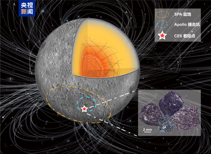 嫦娥六号任务从月球南极-艾特肯盆地内的阿波罗撞击坑采回了人类首批月背样品。我国科学家已经证实,嫦娥六号样品玄武岩主期次喷发年龄为28亿年。这些样品为认识月球发电机时空演化提供了前所未有的机遇。中国科学院地质与地球物理研究所朱日祥院士和蔡书慧副研究员带领的团队对样品中的4颗毫米级玄武岩进行研究,得到了新的发现。