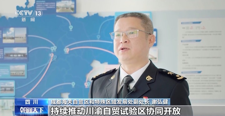 成都海关自贸区和特殊区域发展处副处长 谢弘健:川渝两地海关持续推动川渝自贸试验区协同开放,自贸试验区成立7年以来,两关累计推出133项自贸试验区海关监管创新举措,“中欧班列集拼集运”等四项自贸创新获全国推广,“关银一KEY通”川渝一体化模式等三项改革成功入选全国自贸试验区“最佳实践案例”。
