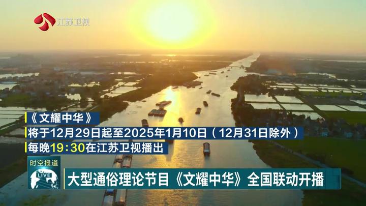 为深入学习宣传贯彻习近平文化思想,生动阐释这一思想的核心要义、精神实质、丰富内涵和实践要求,由国家广播电视总局指导,中共江苏省委宣传部、江苏省广播电视局、江苏省广播电视总台联合出品的大型通俗理论节目《文耀中华》,将于12月29日起在全国30多家省级卫视和重点视听网站联动播出。