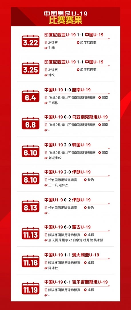 在2024年中,U19国足共打了10场比赛,取得了4胜4平2负的成绩。其中特别值得一提的是,他们在6月进行的华山杯国际足球邀请赛中,曾以2比0击败了韩国队,大大鼓舞了当时正处于低谷的中国足球的士气。而在此后8月份的长治国际足球邀请赛上,他们还曾以2比0战胜了伊朗队,表现出了不错的技战术素养。