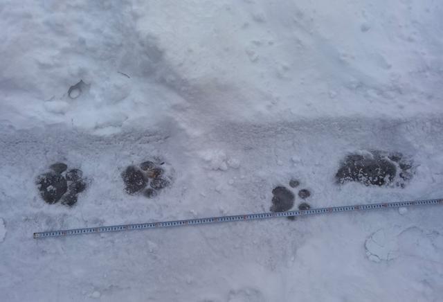 11月26日,工作人员在长白山西坡发现疑似野生东北虎脚印。(受访者供图)