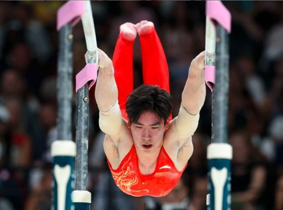 巴黎奥运会上,邹敬园获得男子双杠金牌。图片来源:新华社