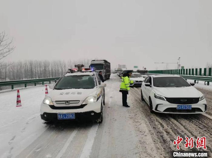日前,S06泗蚌高速蚌五段,蚌五固大队为铲雪车辆护尾。安徽省高速公路路政支队 供图