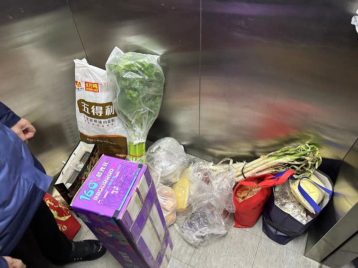 周亚接父母从山东来北京过年 父母带的东西装满了整个电梯