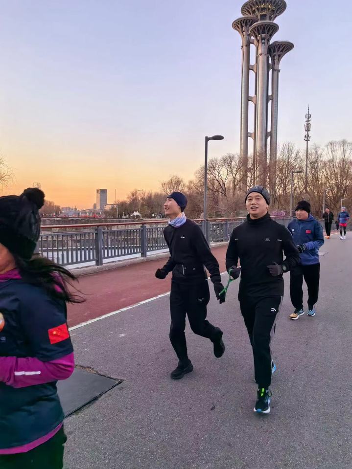 周亚陪伴盲人跑友跑步