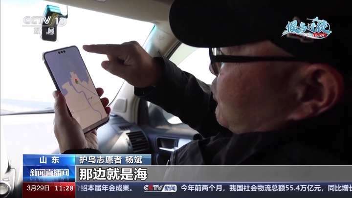 护鸟志愿者 杨斌:你看就大约在这个位置,那边就是海,咱现在得抓紧去,它有可能停了一会就马上就飞走了,马上就过海。