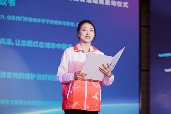 南京职教文旅青年志愿服务总队学生代表宣读倡议书。