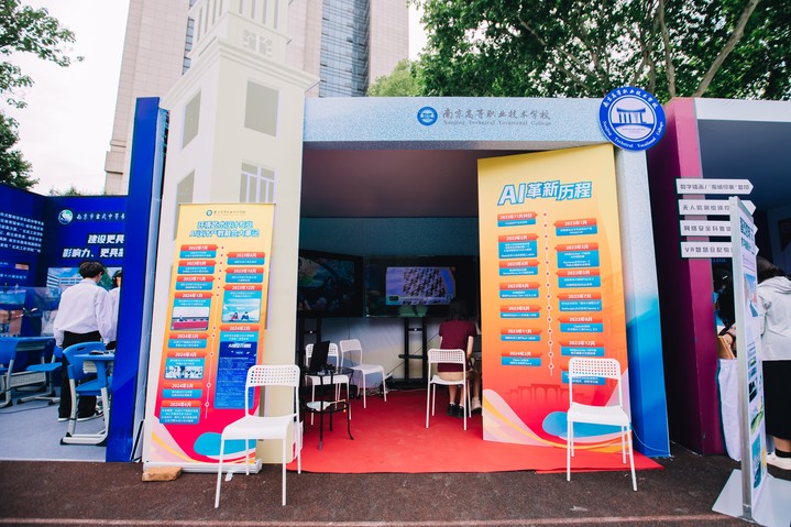 南京高等职业技术学校在职教活动周现场展出AI技术及专业变革。本次展出重在体现职教活动周“智改数转”主题,参展现场分为“AI设计文生图作品、AI设计文生视频作品、AI设计现场体验”三个模块共150多个作品。