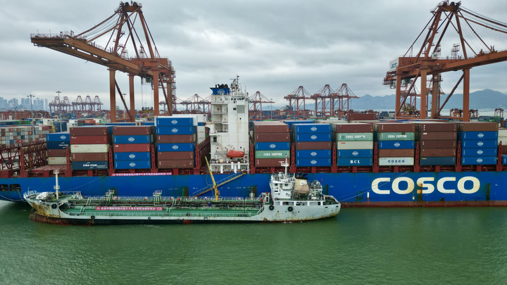 6月18日,记者从深圳海关获悉,近日在深圳蛇口集装箱码头,中国船舶燃料有限责任公司成功为中远海运所属“新亚洲”号轮,加注3850吨生物燃料油(B24)。供油作业全程用时14个小时,顺利完成国内最大单船用生物燃料油加注业务,也标志着国内船用生物燃料油规模化供应迈上新台阶。