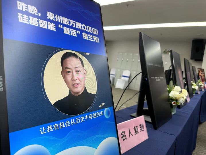 此外,硅基智能在“数字永生”领域也做出了很多尝试。展厅内的电子屏上梅兰芳、闻一多等多位历史名人的音容笑貌得以重现。这都是通过对他们生前影像的深度学习后生成的人工智能产品。
