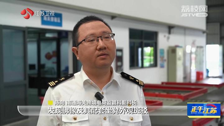 南通海关跨境电商监管科副科长陈向说:“发现佛像及其配套坐凳外观斑驳,且背面刻有‘万历’等字样铭文。”