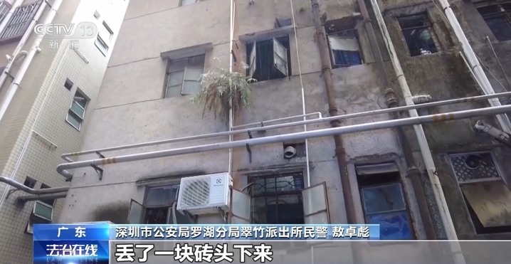 深圳市公安局罗湖分局翠竹派出所民警 敖卓彪:一个姓卢的先生,他女儿过来取快递,他叫她早点回去,他要回老家。他女儿可能没听到,卢先生就从楼上丢了一块砖头下来。用他的话来说,他是引起他女儿的注意。