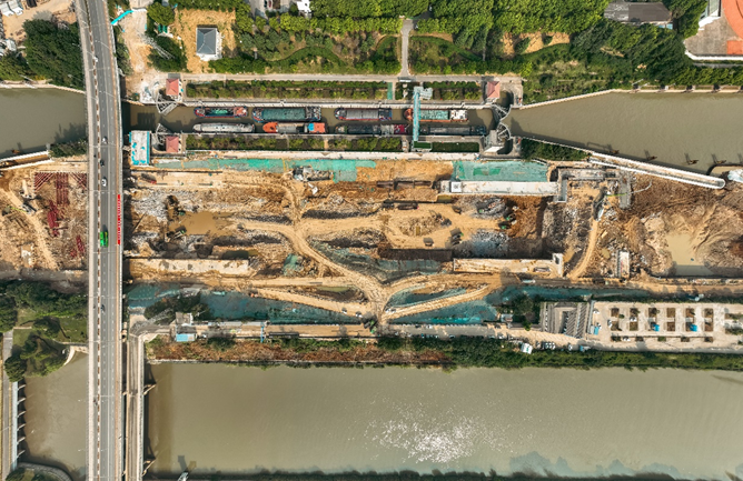2023年3月,谏壁一线闸扩容改造工程正式启动,拉开了“水运江苏”建设大幕。这一工程不仅是船闸本身的改造升级,配合与其同期的京杭运河苏南段航道“三改二”工程,更意味着苏南苏北运河航道从此进入同一标准,船只可以通行无阻。