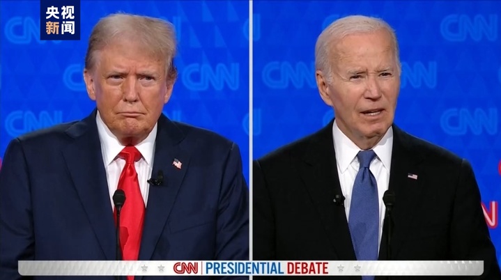 美国当地时间27日晚,由美国民主党籍现任总统拜登与共和党籍前总统特朗普参加的美国2024年总统选举首场电视辩论在亚特兰大举行。整场辩论持续了约90分钟,两人围绕美国经济、移民、堕胎,以及俄乌冲突、巴以局势等问题展开辩论。
