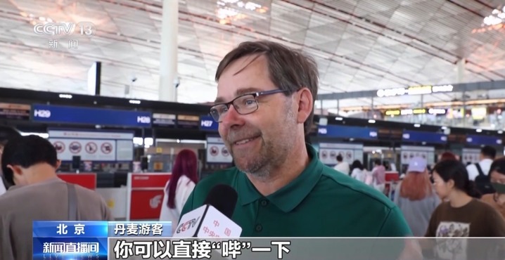 丹麦旅客:在线支付非常方便,你可以直接“哔一下”,用条形码或者二维码就可以自动支付了,这个系统运作得非常好。