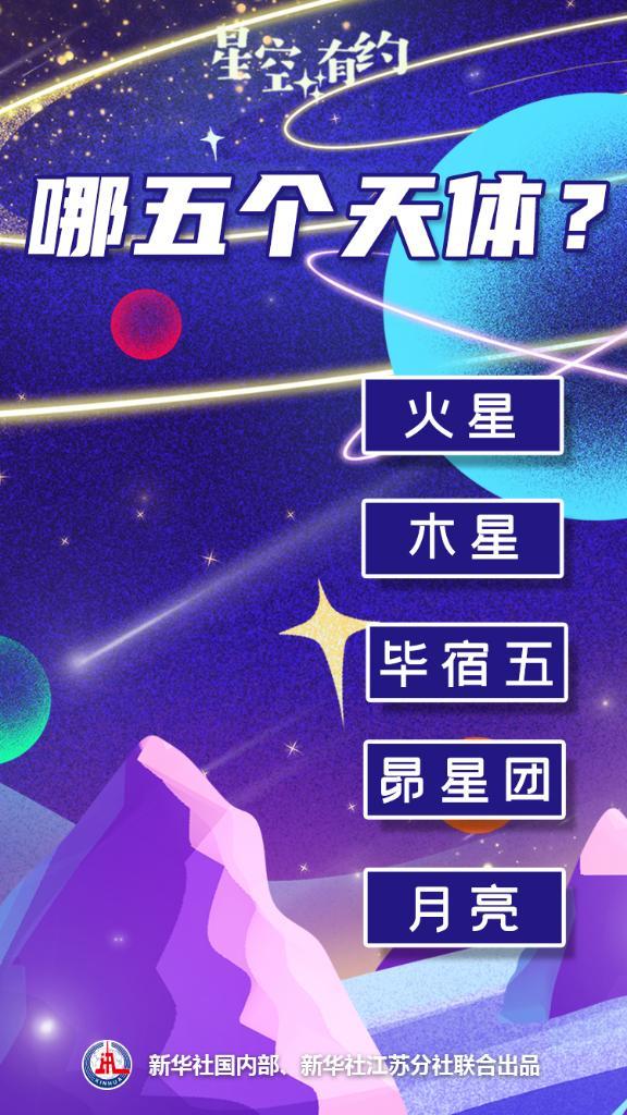 “观赏五天体‘同框’是一个增长天文知识的好机会。如果借助望远镜,你会看到更多天体细节,如木星的大红斑和它的四颗大卫星、昴星团中的单颗恒星、月亮的环形山等。”王科超说。