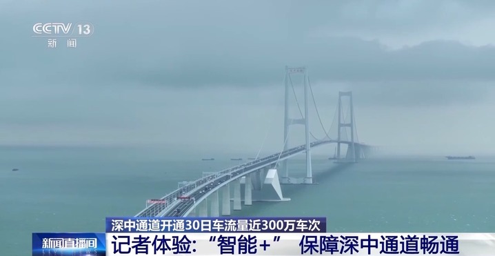 深中通道开通30天以来,车流持续保持高位运行。智能交通系统以及多部门联动,保障着深中通道的安全畅通。