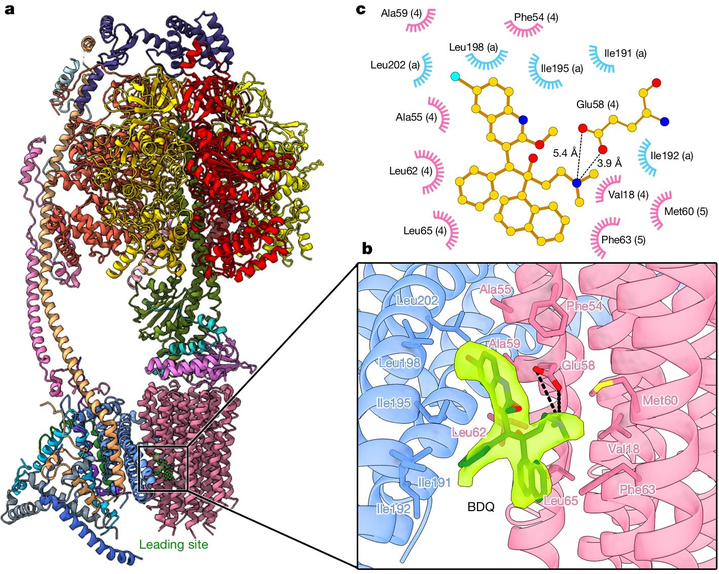 人源ATP合成酶结合贝达喹啉的冷冻电镜结构(南开大学供图)