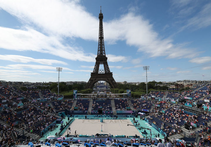 塞纳河在开幕式结束后成为奥运赛场的一部分,巴黎奥运会的许多比赛场馆设置在著名景点——沙滩排球在埃菲尔铁塔附近,击剑、跆拳道比赛在巴黎大皇宫,协和广场是三人篮球、霹雳舞、滑板等新兴项目的比赛场地,凡尔赛宫附近举办了马术、现代五项比赛……