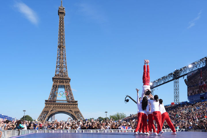 这是现代奥运历史上首次将开幕式从体育场搬到开放式城市空间举办。巴黎奥运会开幕式以城市做背景、河流为“跑道”、码头当坐席,205个代表团、约6800名运动员,搭乘85艘船只,从奥斯特里茨桥出发,沿塞纳河向西航行,途经巴黎圣母院、卢浮宫、协和广场等标志性建筑,最终来到埃菲尔铁塔对岸的特罗卡德罗广场参加庆祝仪式。