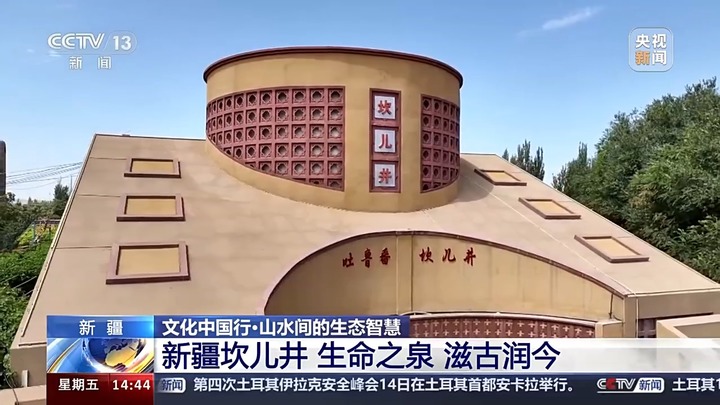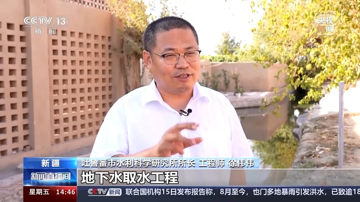 吐鲁番市水利科学研究所所长 工程师徐伟伟:坎儿井是巧妙利用地形地势开凿的地下水取水工程,对于绿洲的农业和生态灌溉非常重要。吐鲁番好多村名,后缀都有“坎儿孜”,就是坎儿井的意思。坎儿井修到哪里,哪儿就是绿洲,哪儿就是美好生态。